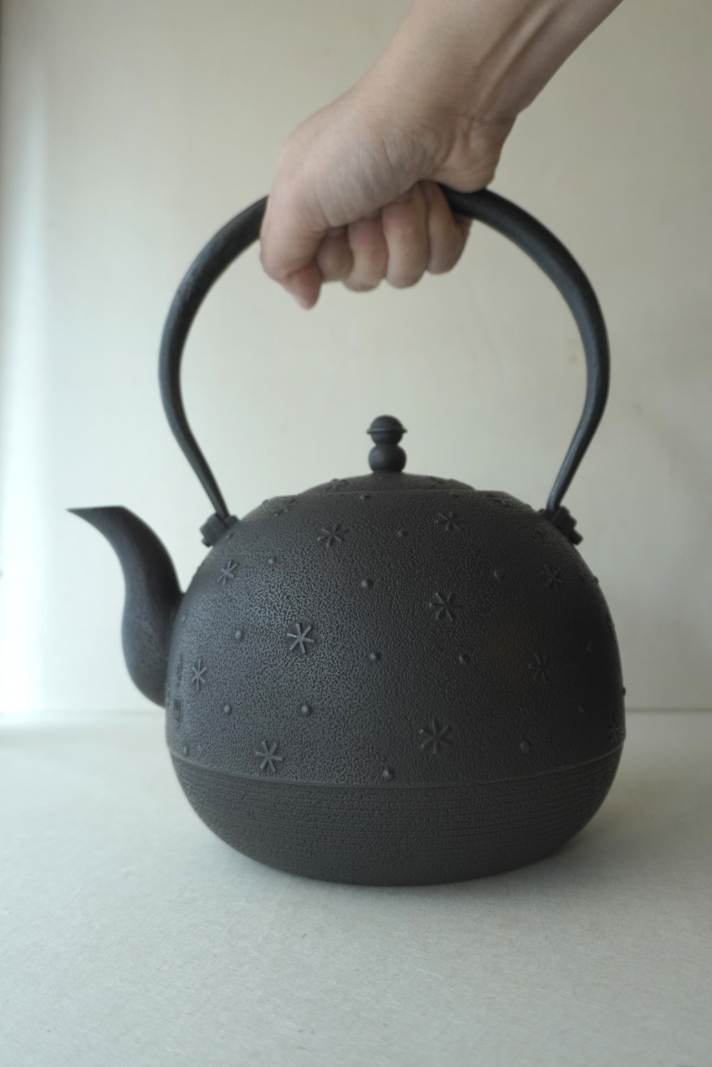布団型 六花紋鉄瓶