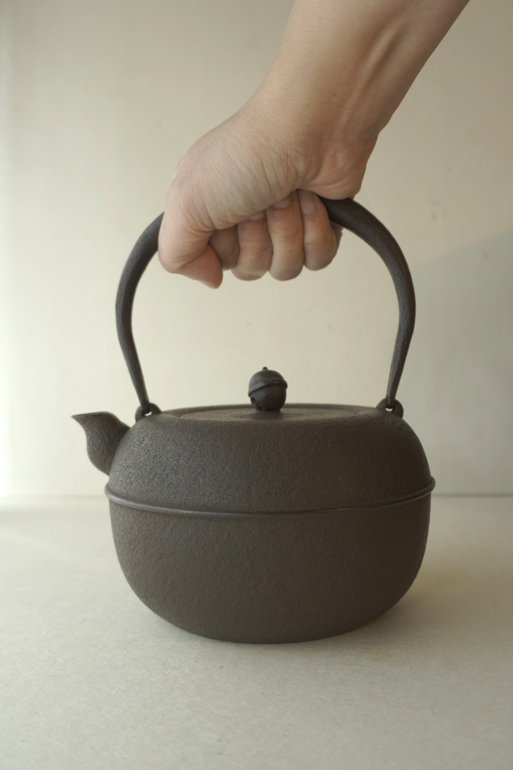 茶漆/蓋穴なし 1.0ℓ 40,000 +tax (税込 44,000 円) 底面の直径:80mm 本体口径:70mm 本体幅:150mm 本体高:90mm (鉉含む:195mm) オーダー可 (蓋穴あり、紐巻き、黒漆でのオーダーもできます) 摘みは本物の鈴のように振ると音がします。