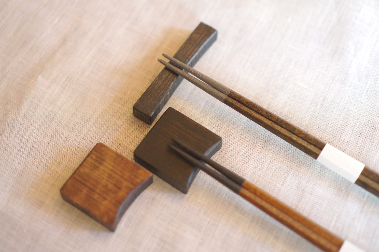 拭き漆箸置き 角型 茶漆/黒漆 長方型 黒漆 いずれも1,650円(税込)