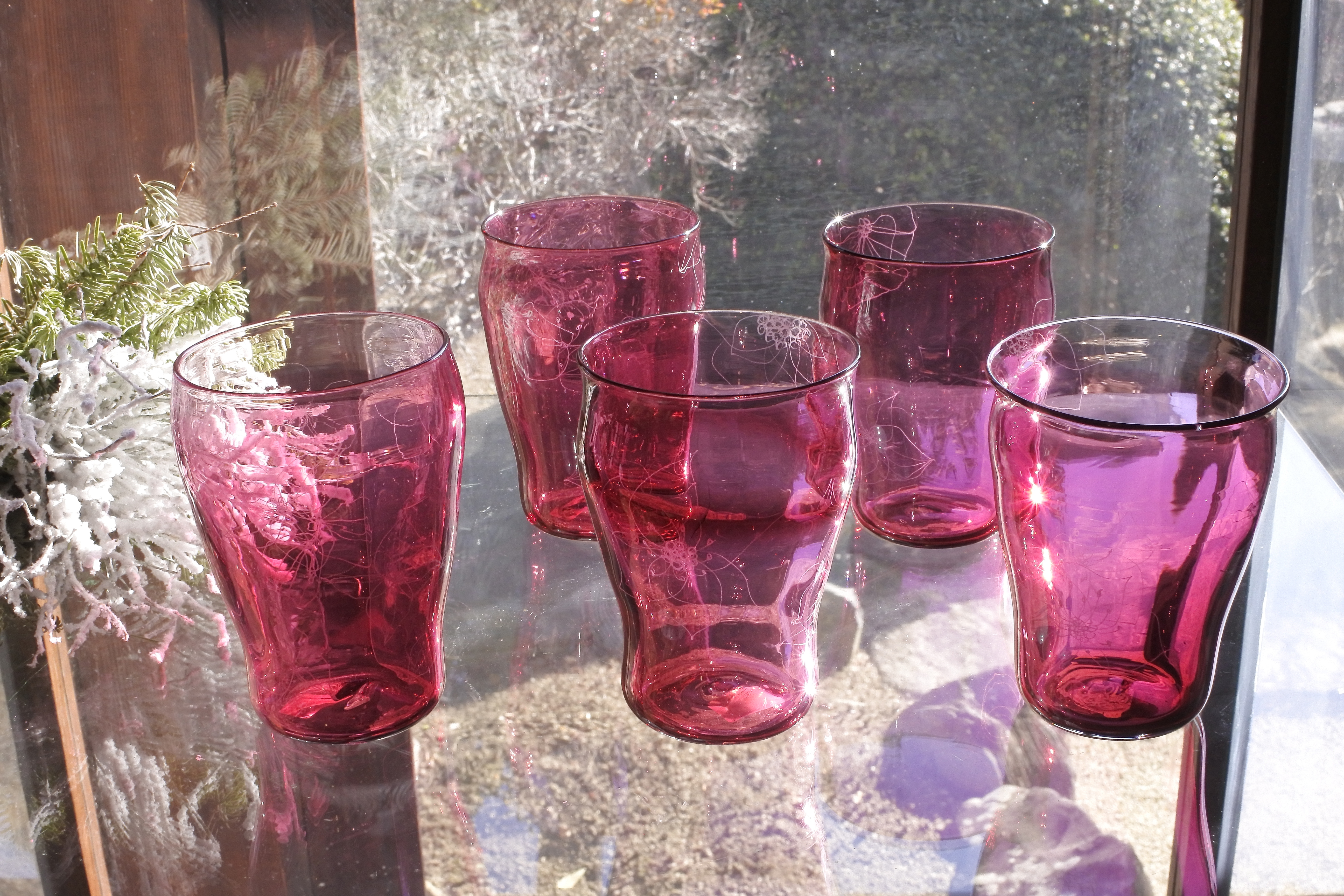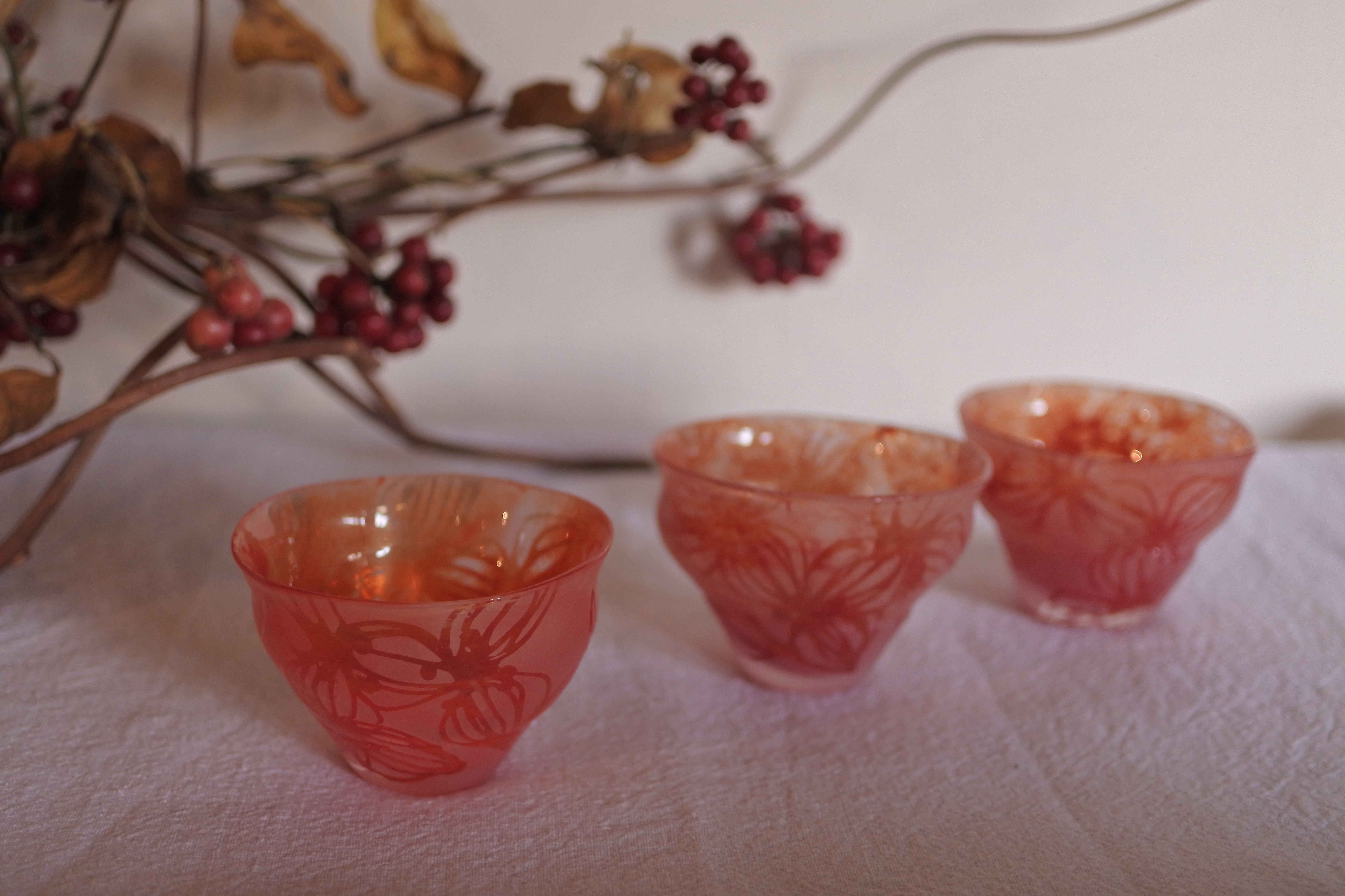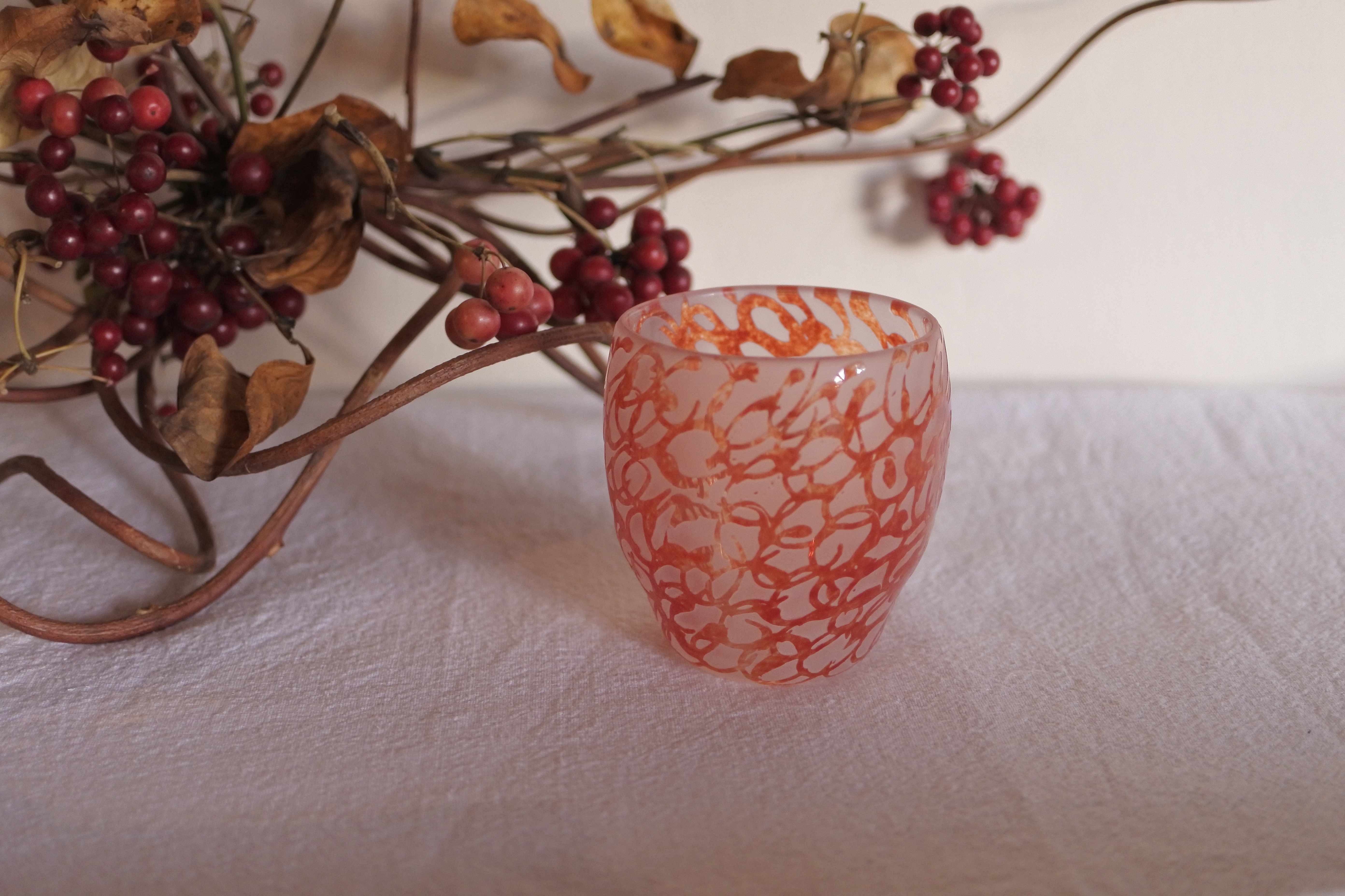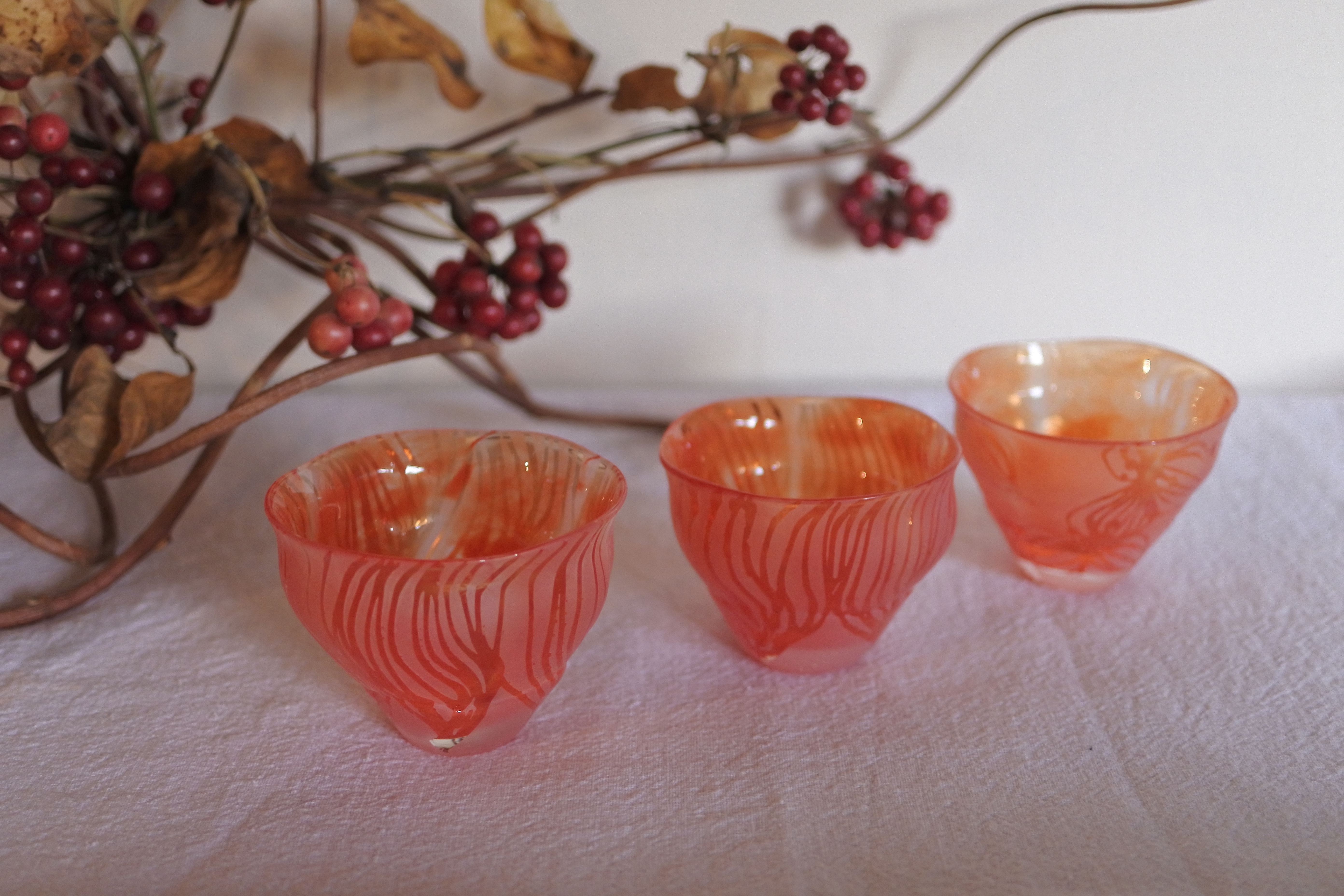 30 赤ぐい吞 (サンドブラスト/赤) 29番と合わせて形が少し違うものが 全6点あります |