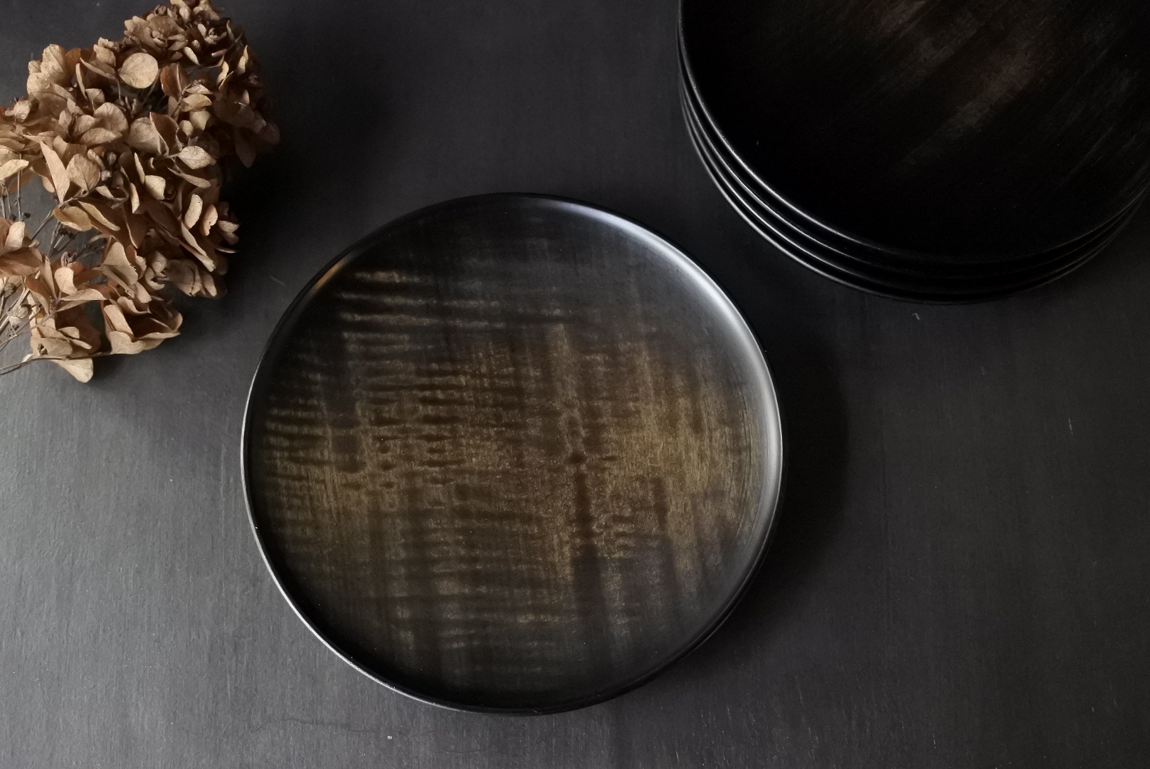 216 栃すり漆台皿φ9黒 |