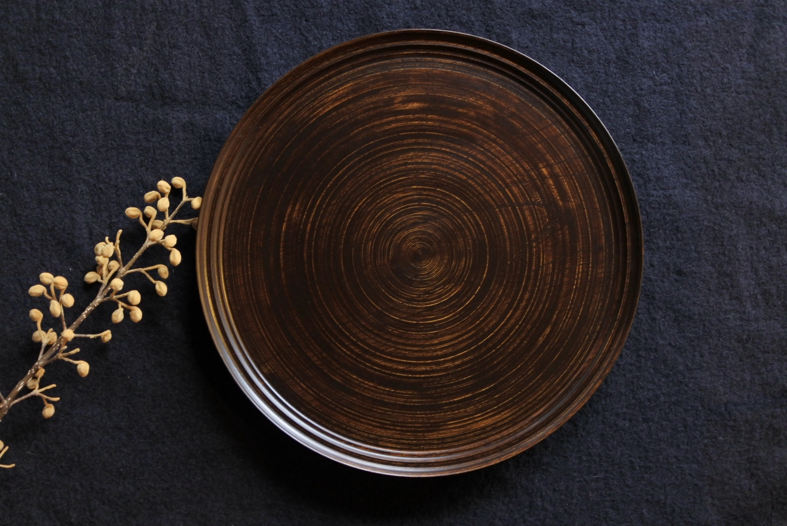 144 栃すり漆板皿1尺4寸黒 |