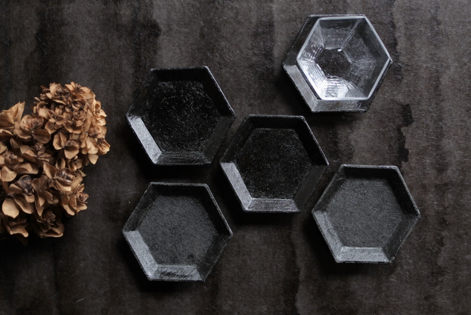 W20 和紙貼六角豆皿M黒 |