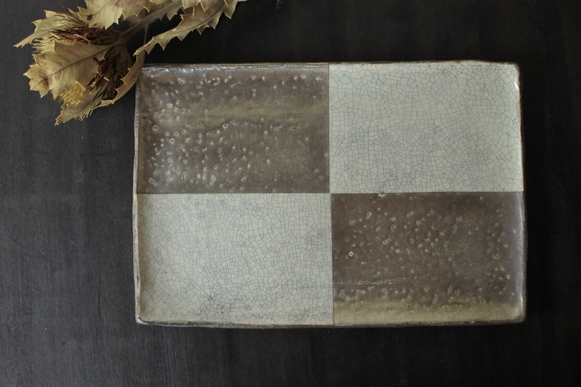 44 黒×白×シルバー 長角皿(市松) 在庫 1点 オーダー可 |