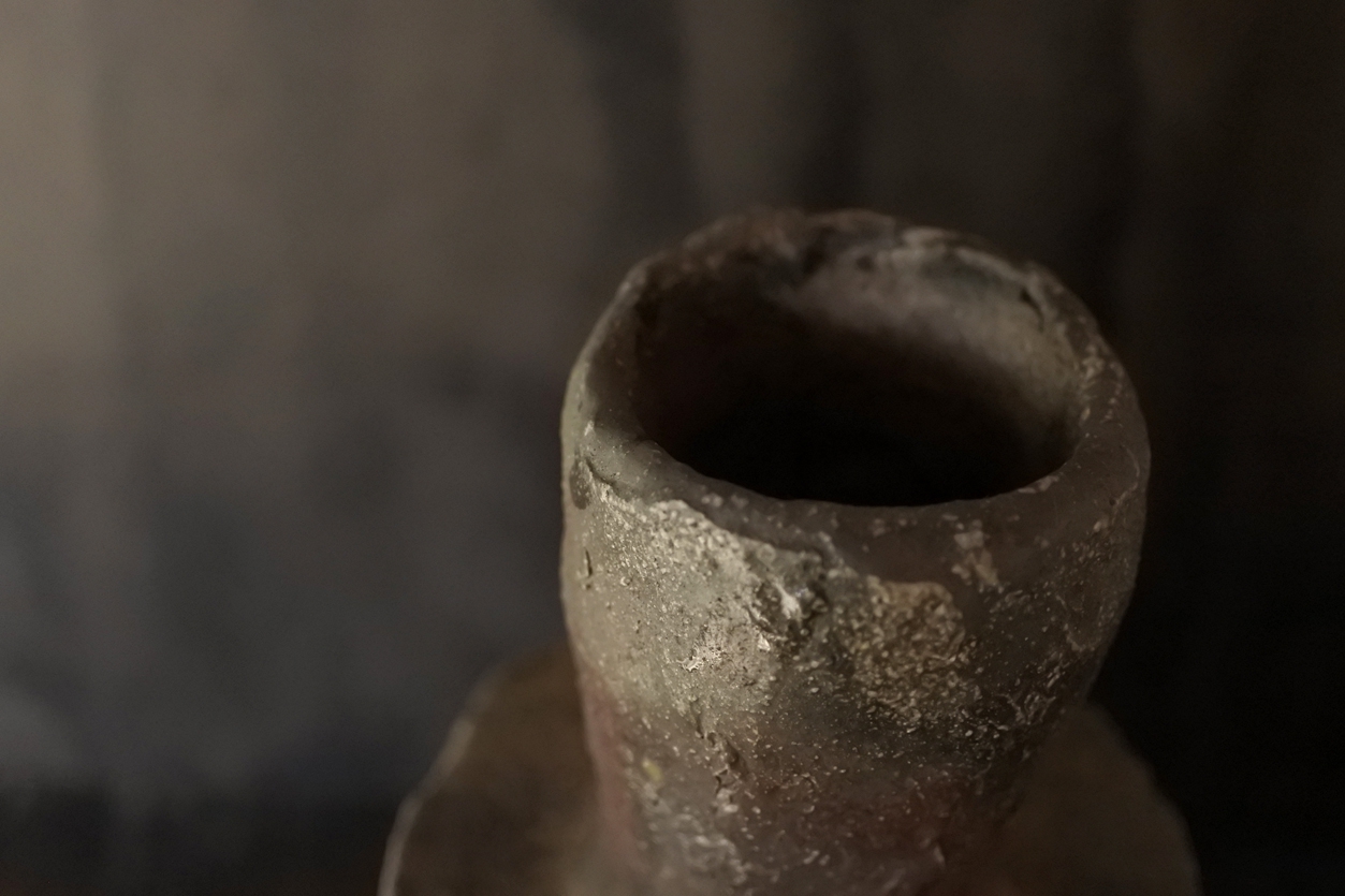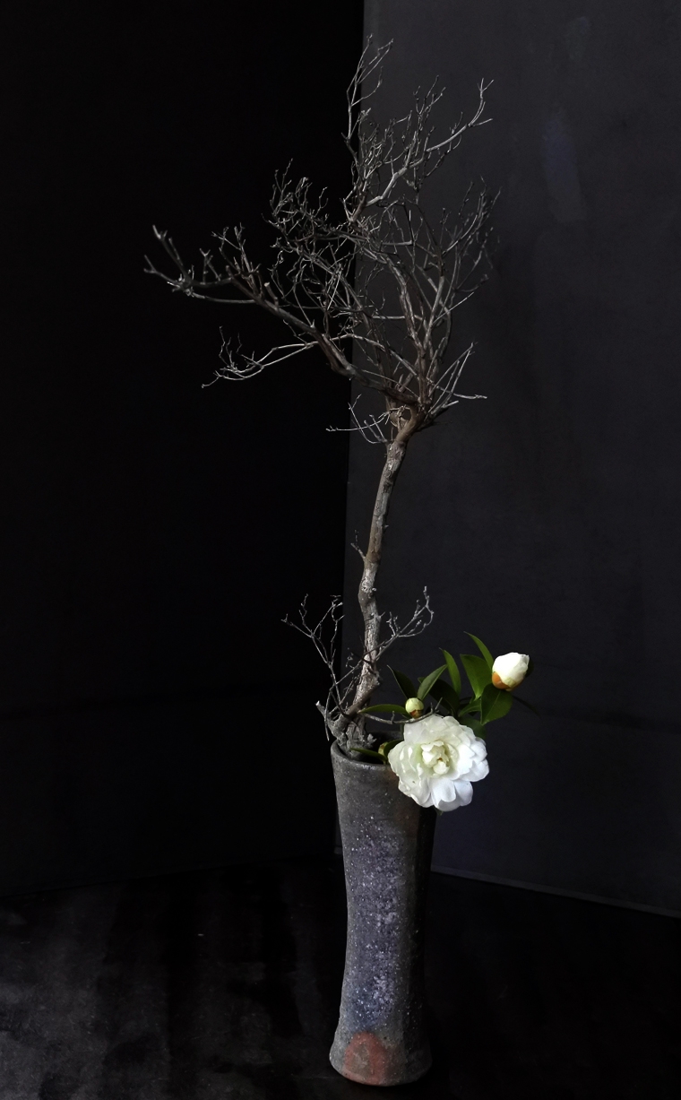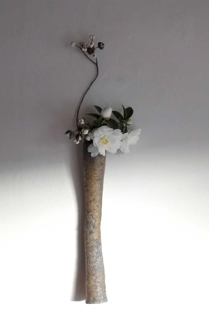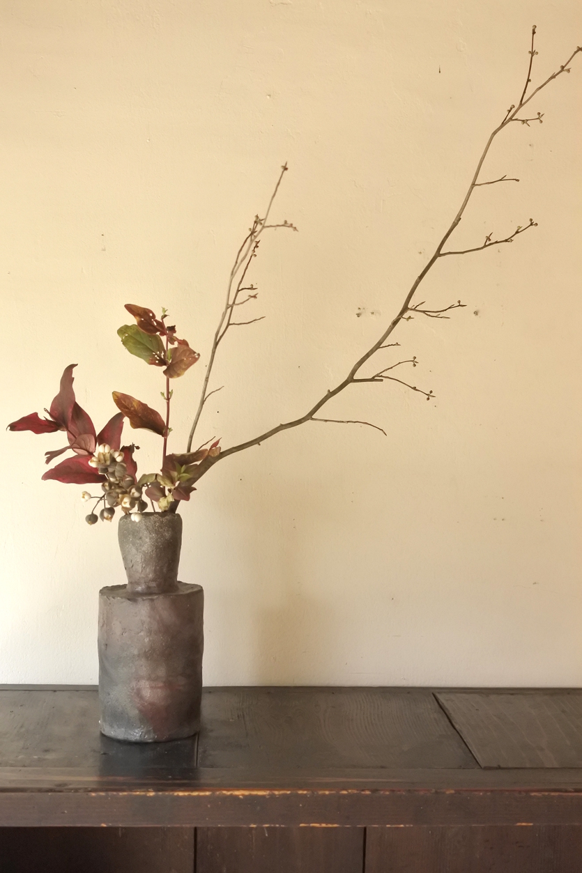 島さんの花入れは、例えば小石のようであり小枝のようであり