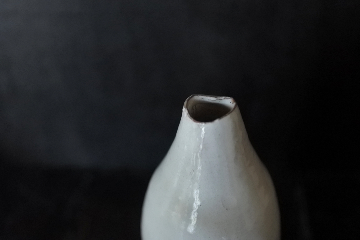 一輪の野の花が生々と咲きつづけているような花入_