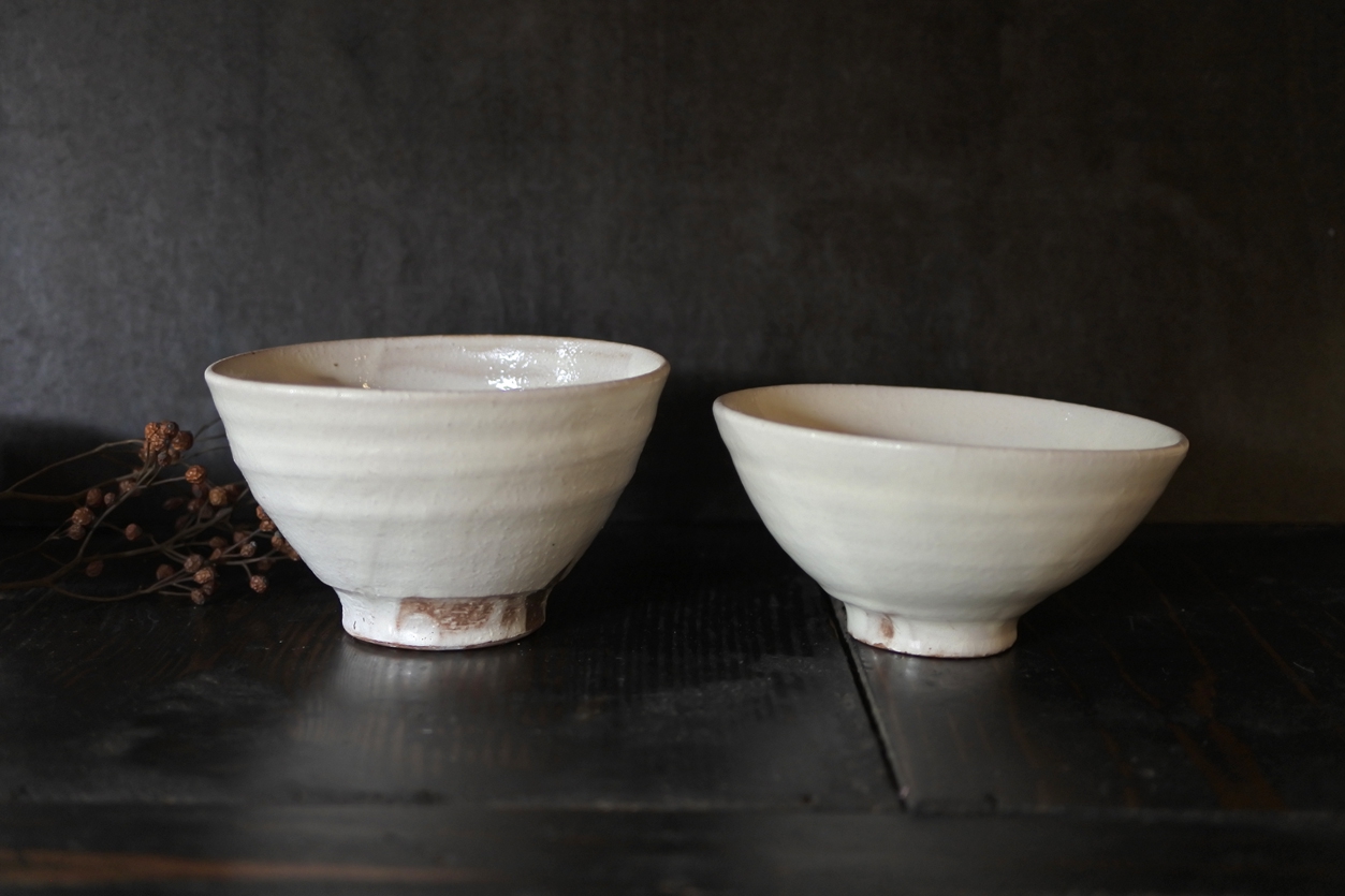 粉引 めし碗 ご飯がいっそう美味しそうにみえるめし碗。 丸型と平型があります。 大サイズ 径約12cm 高さ約6-7.5cm 4,500 +tax 丸型 平型 小サイズ 径約11.5cm 高さ約6.5cm 4,000 +tax