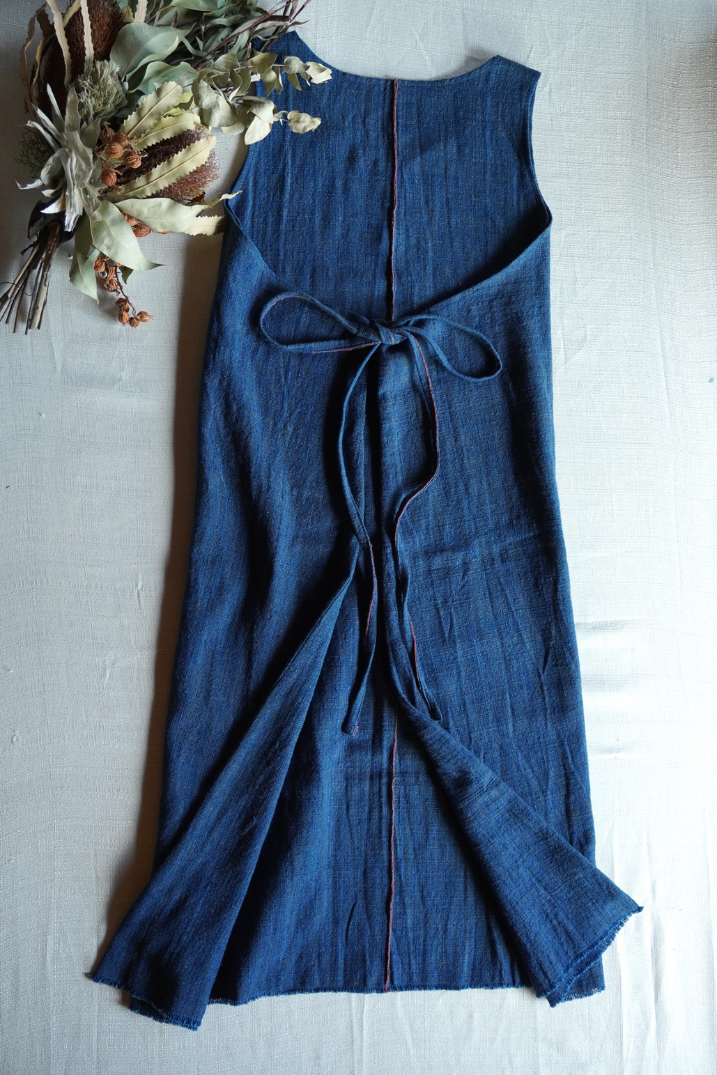 草木染め、手紡ぎ、手織りされた