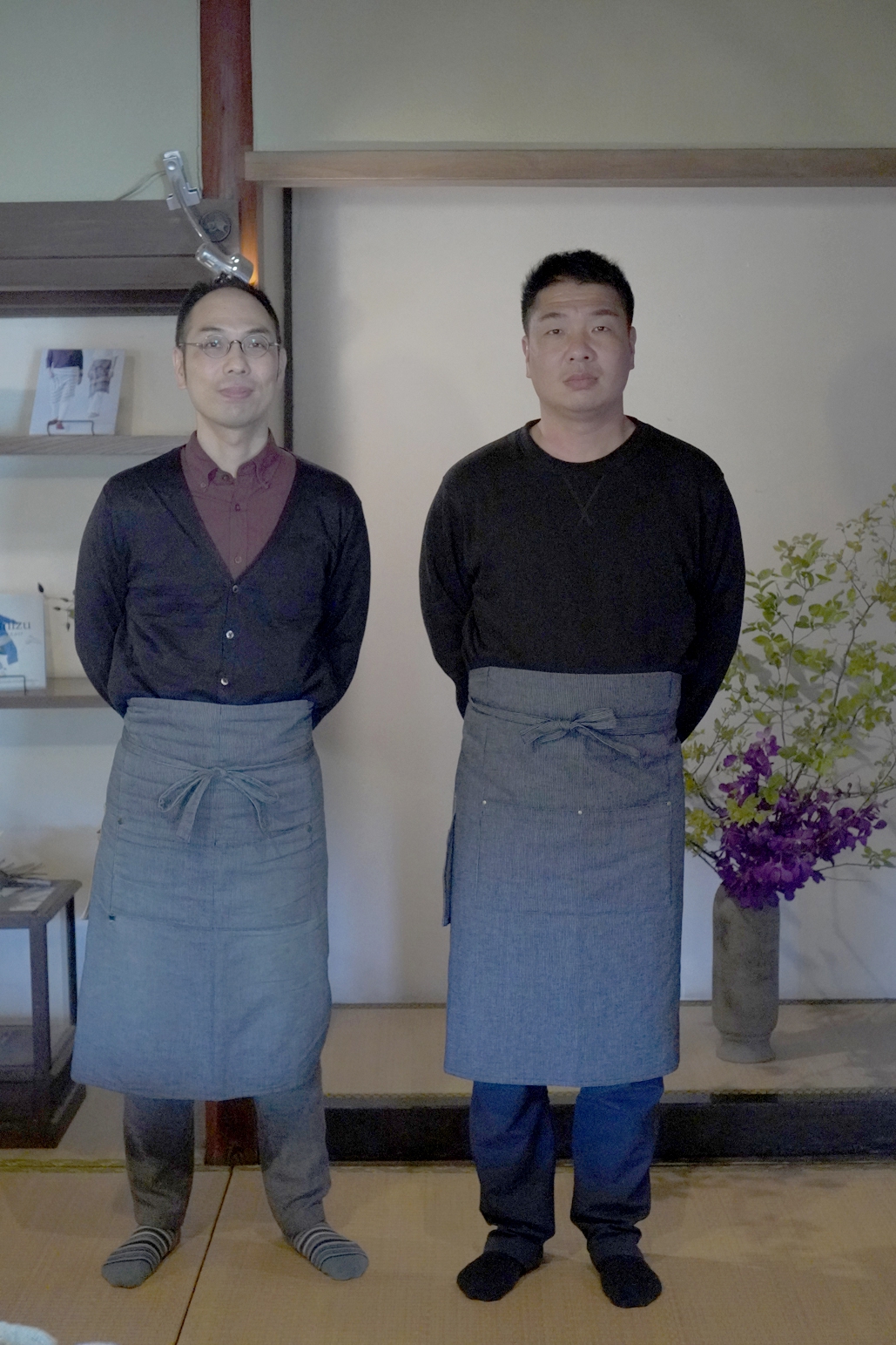 坂田さんのまえかけは男性にも人気です。