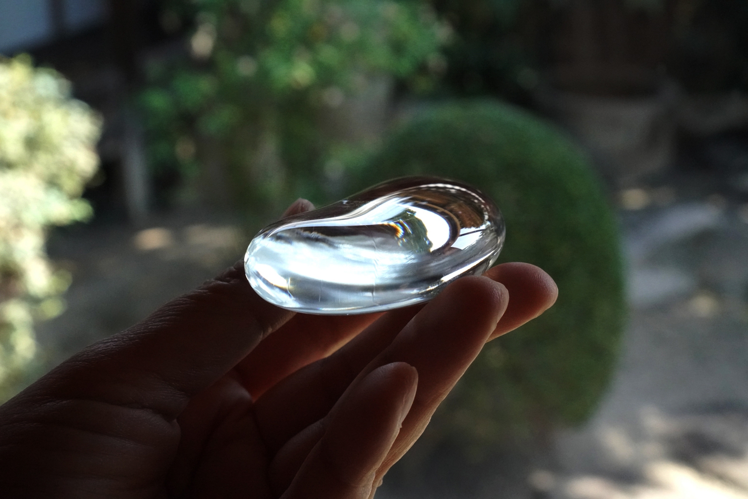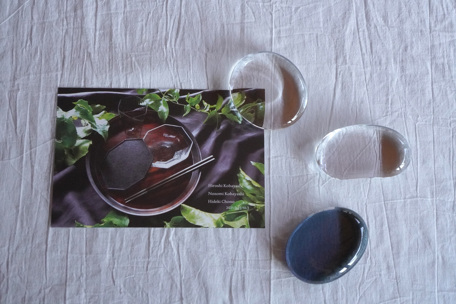 2021小林裕之 希 作品 ころ(ペーパーウェイト) 何にもならないかもしれないし 何かになるかもしれない 「その人次第で使ってもらえるものがあったら楽しい」 と、河原の石をイメージして作られた柔らかなフォルムです。 箸置きにも。 径6cm~6.5cm 2,750円(税込) クリア 在庫 2点 ブルーグレー 在庫 1点 ブルーグレー こちらは凹みがあるので 塩皿としてもお使いになれます こちらはそら豆型 ご売約済